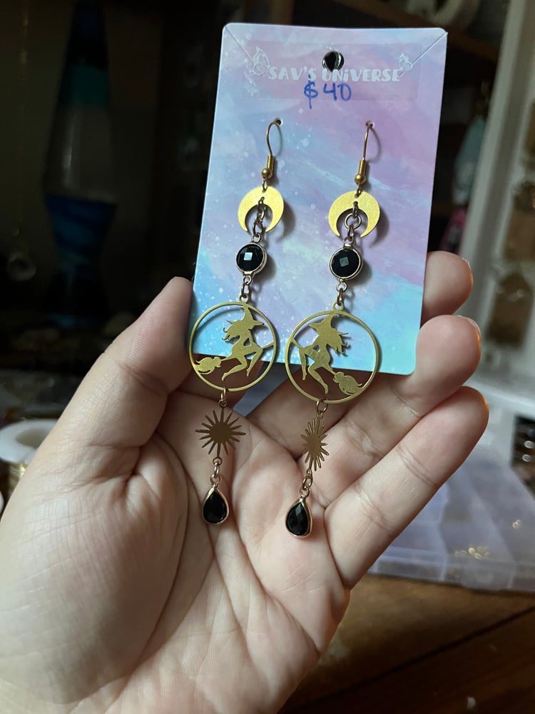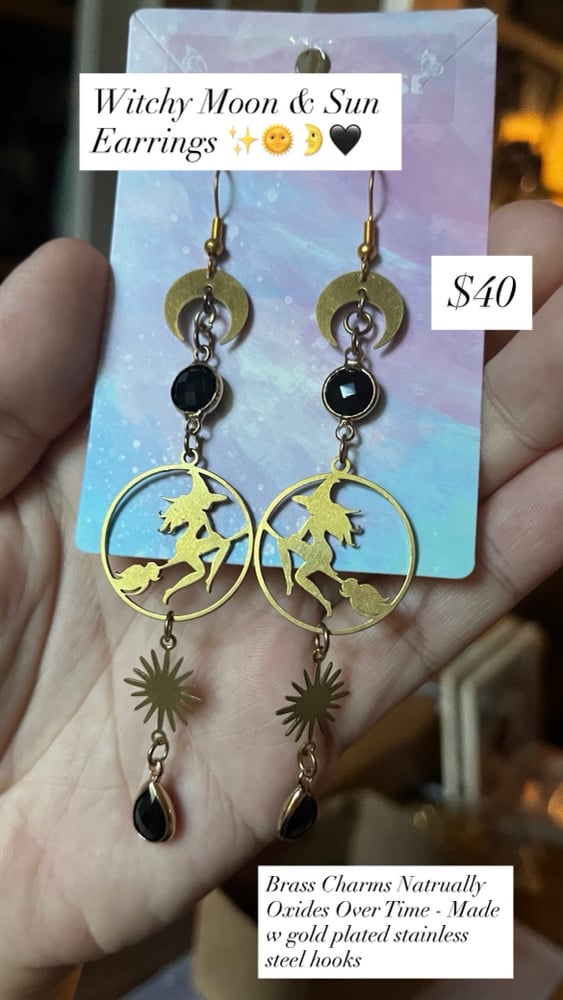 ⢠brass natrually oxides overtime - handle with care - made with gold plated stainless steel hooks. Handmade W love, intention & star dust.